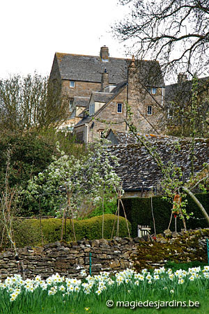 Le Manoir de Snowshill appartient à l’Abbaye de Winchcombe à partir de l’an 821 jusqu’à la dissolution des monastères en 1539, quand il devint la propriété du roi Henri VIII. Passant par la suite par diverses mains. Pour en devenir une ferme délabrée. C’est Charles Wade l’acheta en 1919. Il commença aussitôt son œuvre de restauration.Les jardins en terrasse, furent disposés par Charles Wade, avec l’aide de Baillie Scott, entre 1919 et 1923 sur l’emplacement de l’ancienne basse-cour. Les jardins contiennent des bassins et une profusion parfumée d’éclatantes fleures et plantes. Ce jardin est le premier appartenant au National Trust qui soit cultivé par une méthode biologique. On peut voir les fruits et les légumes qui poussent dans le jardin pour être ensuite utilisés dans le restaurant de la propriété.