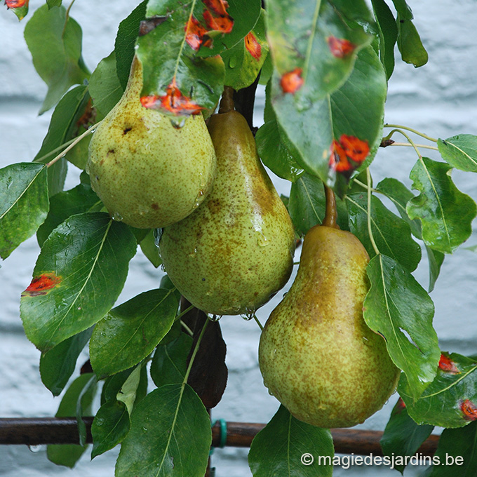 De bomen werpen het teveel aan vruchtjes af zodat de andere mooi dik kunnen worden. Na de rui kun je een fles met een niet te smalle hals over een jong peertje schuiven en ze met ijzerdraad aan zwaardere takken vast t maken zo dat de opening naar beneden wijst. Anders loopt ze vol water en rot de peer tijdens het rijpingsproces.